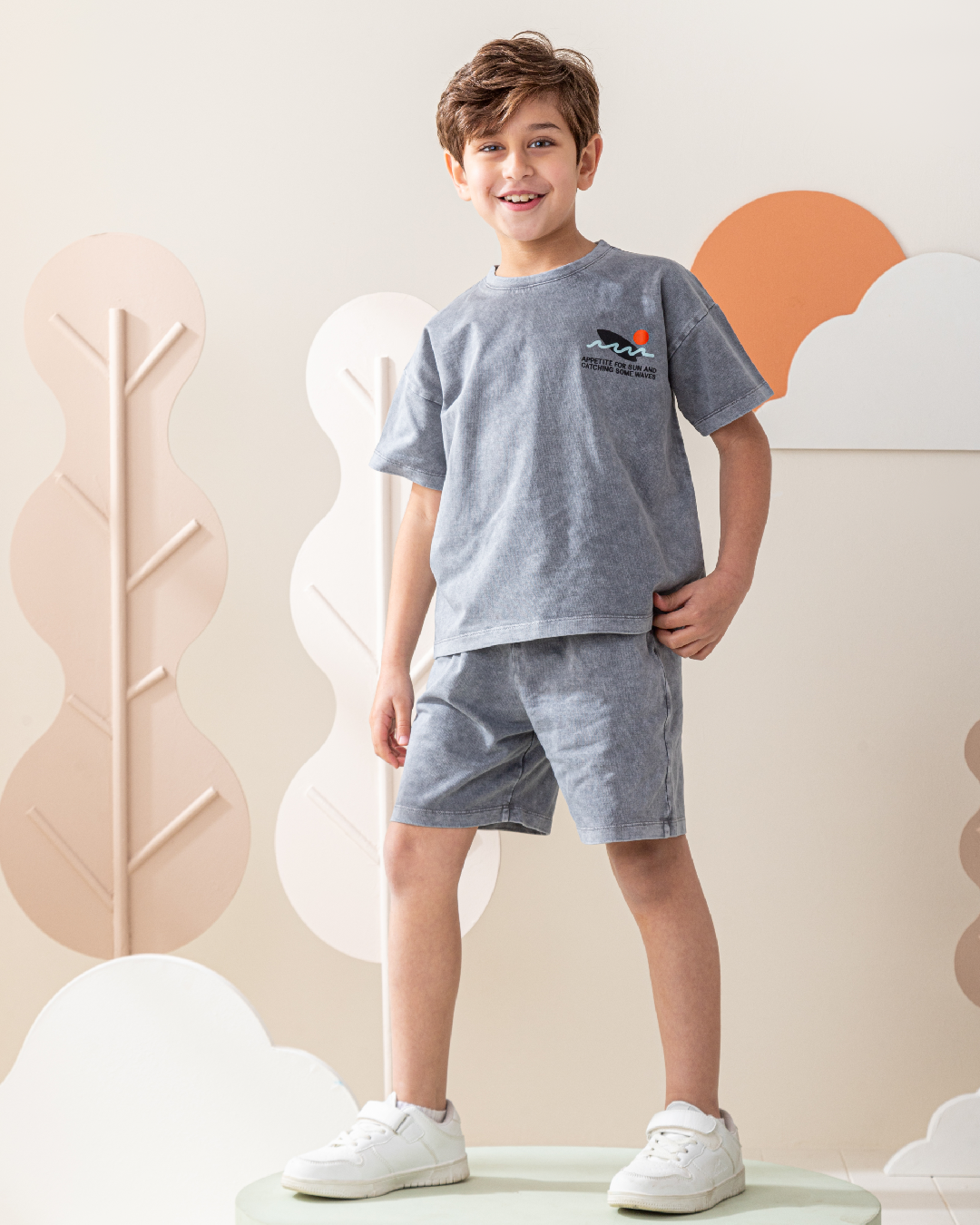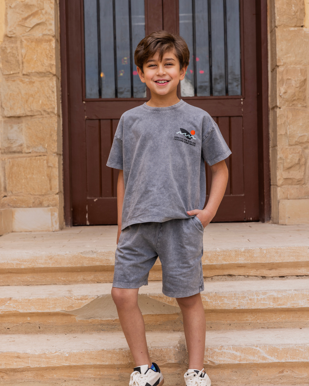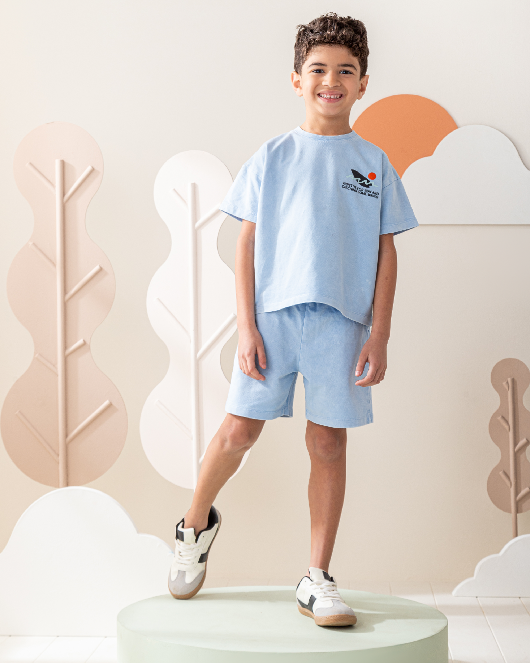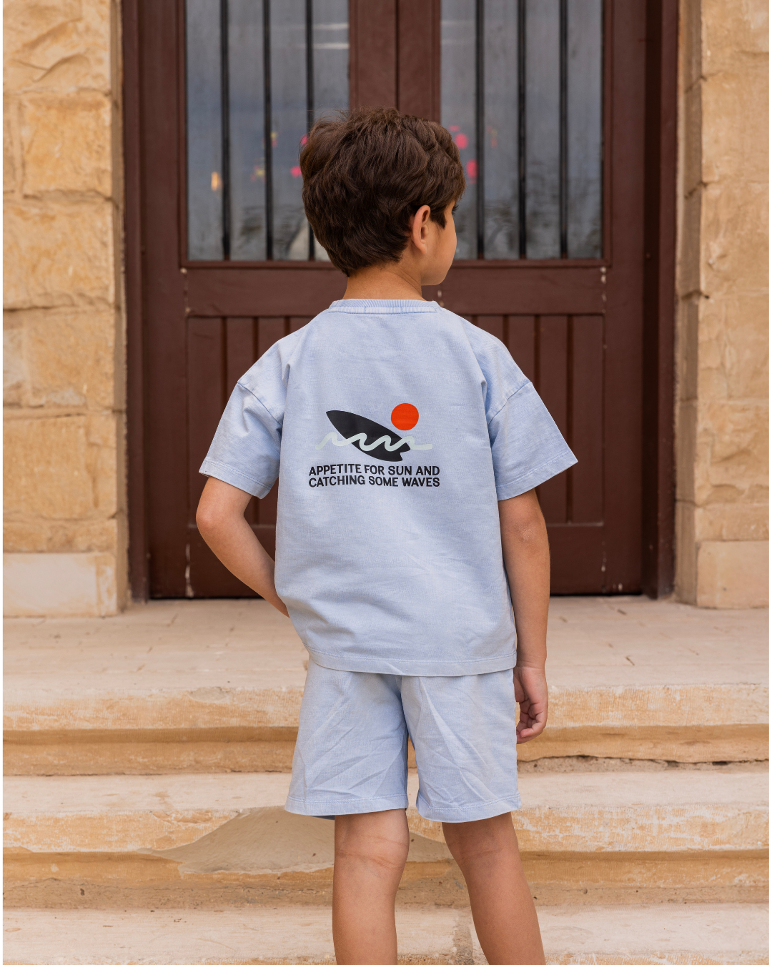 احصل على Little Sailor جاهز للمتعة الصيفية من خلال مجموعة القوارب الرائعة و Sun Boys Shorts. تتضمن المجموعة قميصًا أزرقًا صغيرًا مع تصميم قارب وأشعة الشمس اللطيفة والسراويل القصيرة المطابقة باللون العصري. مصنوعة من نسيج Meltone المريح الصيفي ، هذه المجموعة مثالية لأي مغامرة في الهواء الطلق. متوفر بأحجام 2-10 لتناسب طفلك المتنامي.
