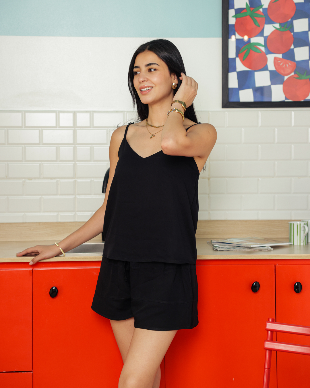 "قم بترقية لعبة ملابس النوم الخاصة بك مع مجموعة الساتان الساتنية النسائية الأنيقة! مثالية للليالي الدافئة ، تتميز هذه المجموعة بأعلى دبابة كلاسيكية وسروال شورت مطابق ، وكلاهما مصنوع من مواد صقيل عالية الجودة. متوفرة في مجموعة من الألوان الأنيقة - Black ، الأزرق البحري ، والوردة - والأحجام من S إلى XL ، يمكنك العثور على الملاءمة المثالية للليلة المريحة. تعامل مع هذا الأمر.