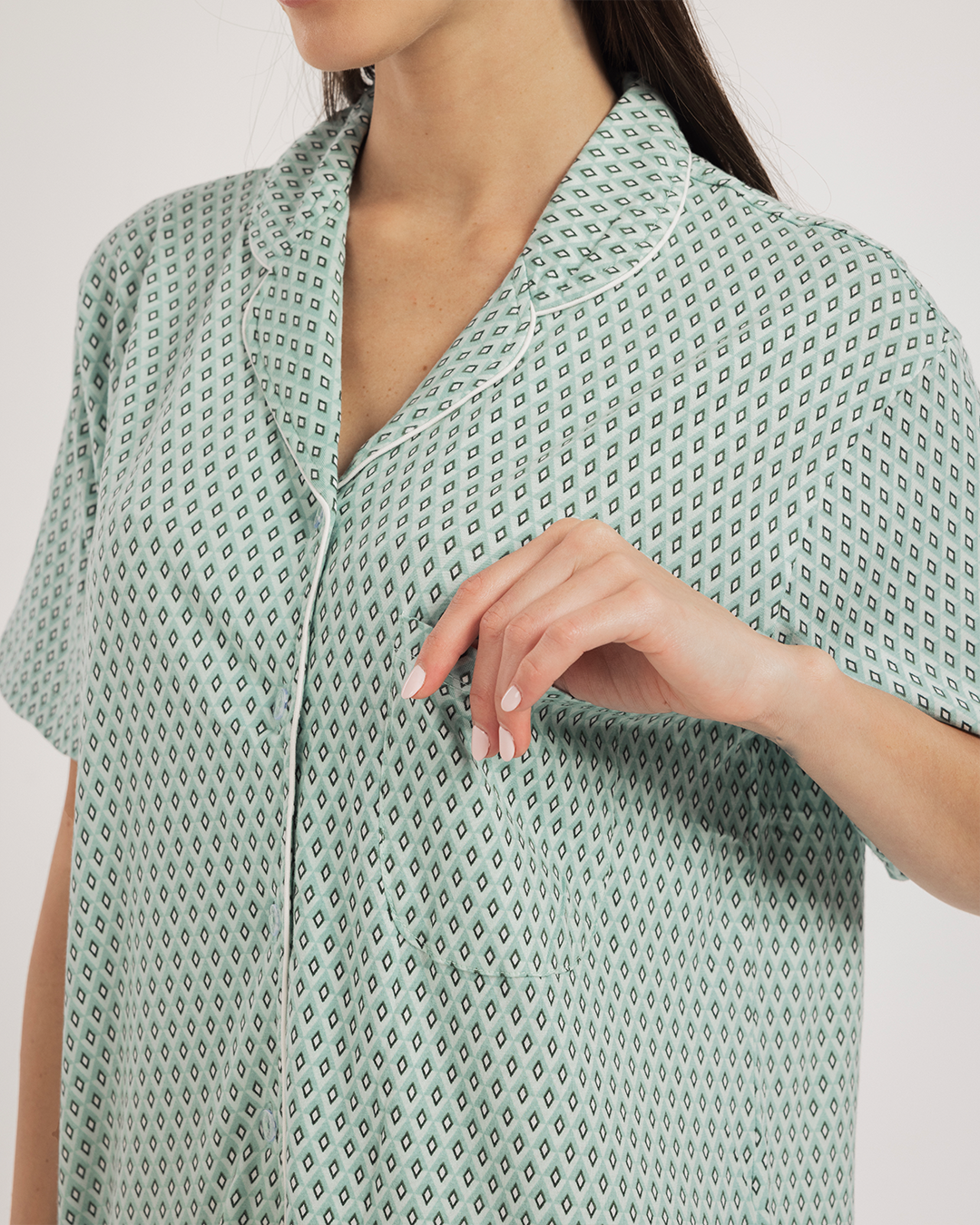 تقديم الإضافة المثالية لخزانة ملابسك ليلا - قميص ليلي Geo Mint Women الزر! مصنوع من مزيج ناعم وتنفس من القطن 50 ٪ و 50 ٪ مشروط ، هذا القميص الليلة مريحة وأنيقة. يضيف لون النعناع المنعش لمسة من الهدوء إلى روتينك المسائي. متوفر بأحجام S-3XL ، هذا القميص الليلة أمر لا بد منه في نوم ليلة هادئة.